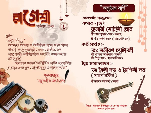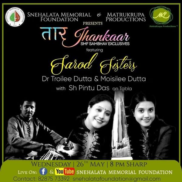 “Sarod Sisters” have been started performing together since childhood. They have performed in many musical soirees & got the blessings from the stalwart musicians and audiences across the globe. They have performed for The Dover Lane Music Conference, Kolkata; Pandit Ravi Shankar Music Foundation, New Delhi, Milap, UK, Art of Living International Centre, Bengaluru; Padma Vibhaushan Ustad Ali Akbar Khan’s Birth Centenary Concert by Aashish Khan School of World Music & Annapurna Devi Foundation, Kolkata; Bhimpalas- Bharat Ratna Pt. Bhimsen Joshi Birth Centenary Celebration in Dharwad, Karnataka; Calcutta Performing Arts Foundation, Chowdhury House, Kolkata; Rang festival, Ustad Rashid Khan’s Academy- The Fifth Note Global Centre of Excellence, Kolkata; Visvas Sangeet Samiti, Haryana; Kala Sanskriti Pratisthan, Gurgaon; Pandit Ramchandra Dubey Memorial Trust, New Delhi; Sarb Akal Music Society of Calgary, Canada; Gayana Sabha, Mysore; Sri Indradeo Centre for performing Arts, Indore; Snehalata Memorial Foundation, New Delhi; Shruti Sarita Arts, Dehradun; Kala Sanskriti Pratisthan, Gurgaon; Vivekananda Study Centre, Kolkata under the guidance of The Ramkrishna Mission and Swami Vivekananda’s Ancestral House & Cultural Centre; the prestigious Dhun Concert; Shibpur Ranjini, Howrah to name a few.
