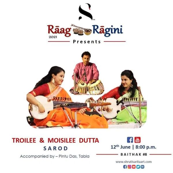 Troilee & Moisilee are the two young Saord players of Senia-Maihar Gharana, popularly known as the “Sarod Sisters” in the fraternity of Indian Classical Instrumental Music. They both have learnt under the affectionate guidance of Pandit Kamal Mallick. Troilee also took intensive taalim from Sitar virtuoso Pt. Sanjoy Bandopadhyay and now they are under the noble guidance of Sarod maestro Pt. Partho Sarathy.